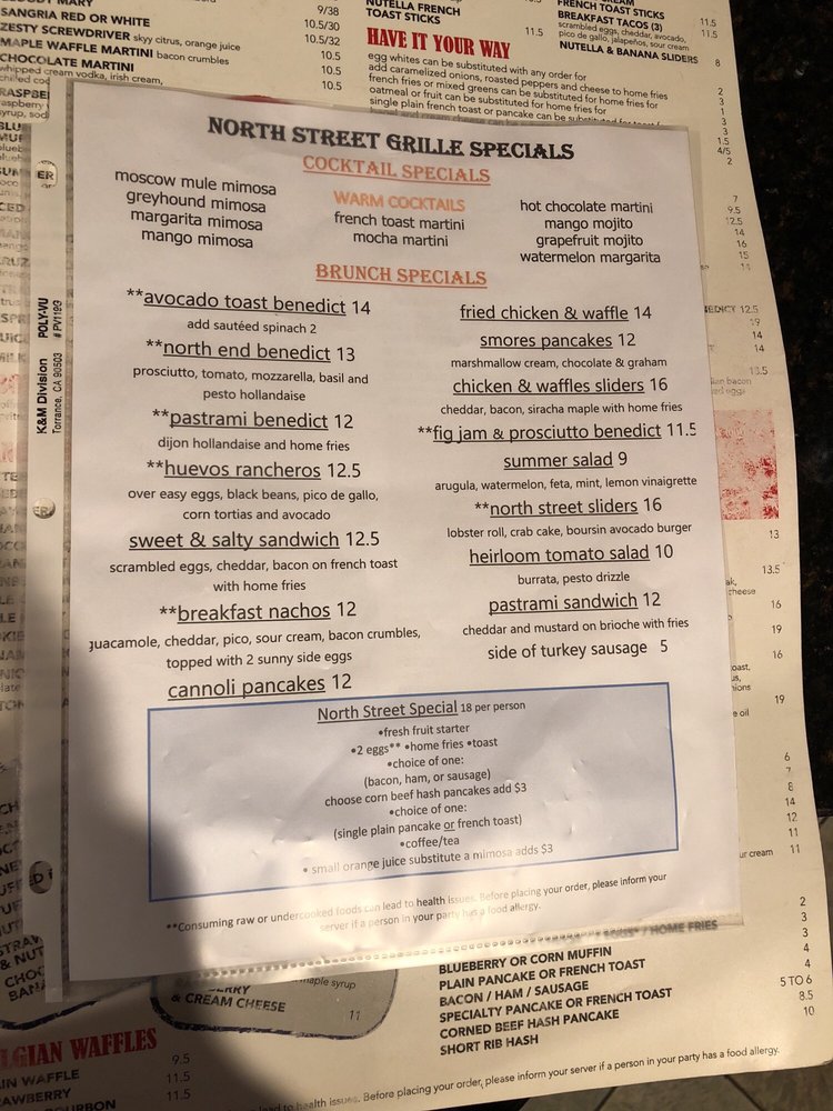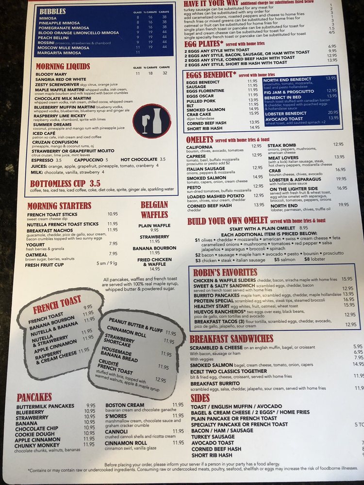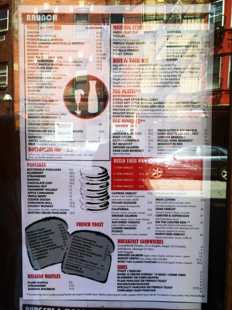 North Street Grille in Boston's North End is a popular spot for New American breakfast and brunch. Offering a variety of options, from French toast sticks to breakfast burritos, this restaurant caters to various preferences, including vegan and vegetarian. With a casual atmosphere and a full bar, it is perfect for groups and families. Customers rave about the corned beef hash, lobster asparagus omelette, and banana bourbon French toast. The cozy brick building and charming small-town vibe make it an inviting place to start your day. Despite possible wait times, the delicious food and attentive service make it worth it. Don't miss out on their signature dishes like the cinnamon roll pancakes and Boston cream pie pancake. Make sure to make a reservation to guarantee a spot at this beloved breakfast spot in Boston.